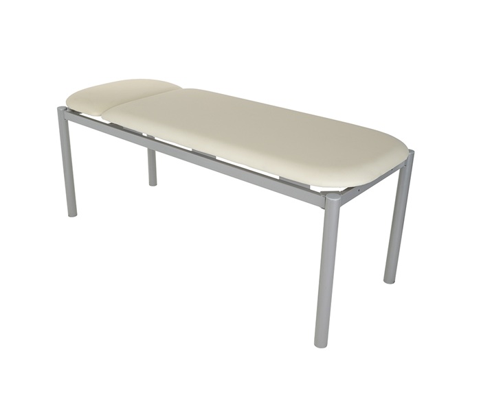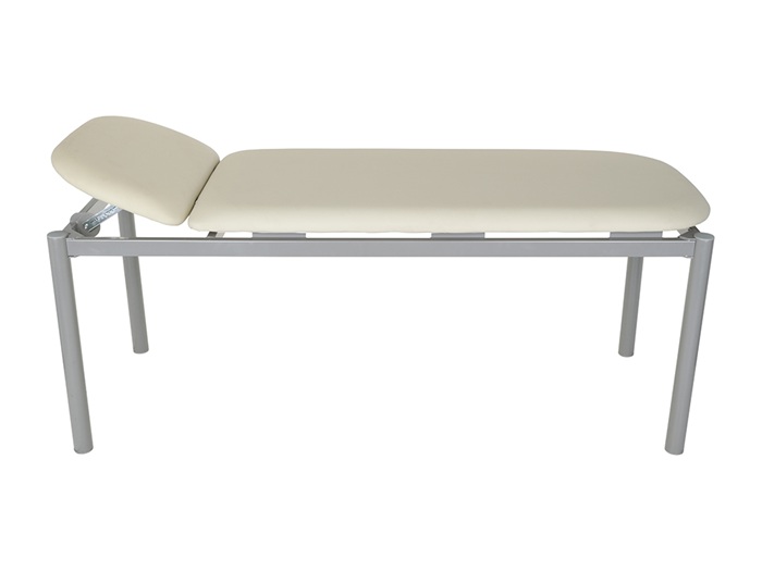 Медицинская кушетка МД КС-02 от производителя ПРОМЕТ представляет собой сборно-разборную конструкцию, предназначенную для ожидания пациентов в очереди ко врачу, также она используется для отдыха в помещениях стационаров больниц и поликлиник. Каркас кушетки МД КС-02 изготовлен из стальной трубы квадратного сечения 50х25х2 миллиметра, сидение изготовлено из ДСП толщиной 16 миллиметров с настилом из поролона толщиной 40 мм. Для обивки используется искусственная специальная полумягкая кожа светлого оттенка. Обивка устойчива к истиранию и воздействию дезинфицирующих средств. Головная секция регулируется с помощью ступенчатого механизма Rostomat. Максимальная равномерно распределенная нагрузка на лежак МД КС составляет 150 кг. Цвет каркаса - серый Ral 9007, цвет обивки - слоновая кость. Дополнительная опция: держатель для одноразовых рулонных простыней и полотенец КММ.