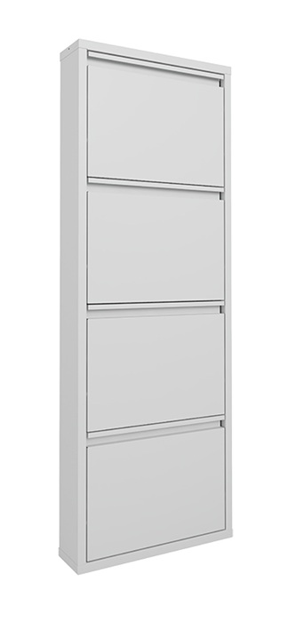 Обувница Практик ОМ-4 белая предназначена для хранения обуви. Обувница состоит из четырех отделений, каждое отделение вмещает 2 пары обуви (до 43 размера). Изготовлена из стали, поставляется в собранном виде. Цвет: белая Ral 9003. Тип покрытия: порошковое