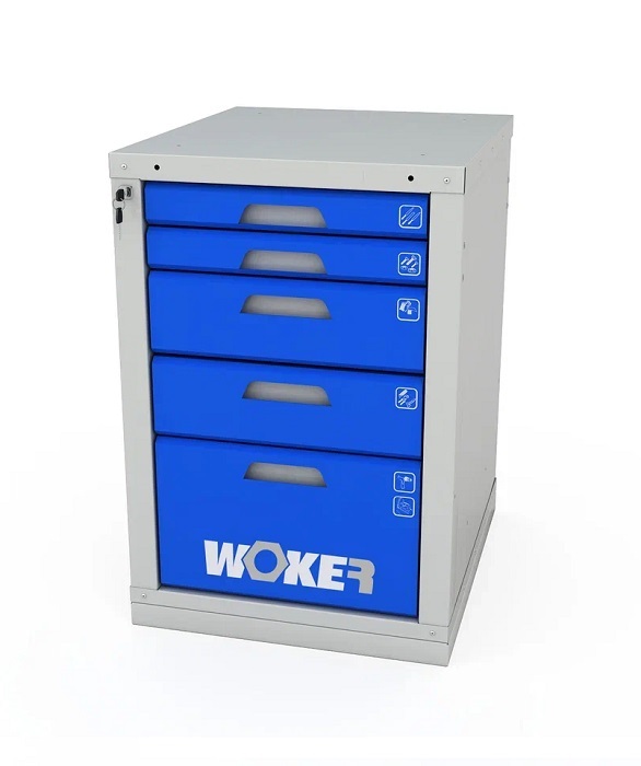В комплектацию верстака входит: столешница Woker 1500, две тумбы Woker 05. Столешница выполнена из шлифованной березовой многослойной фанеры толщиной 30 мм. Снаружи фанера обработана влагостойким антисептиком цвета "красное дерево", что придает фанере повышенную влагостойкость и более темный цвет. Тумба Woker 05 комплектуется 5 выдвижными ящиками (2 высотой - 135 мм, 2 высотой - 65 мм и 1 высотой - 275 мм). Полезный размер ящика: (ШхГ) 459х612 мм. В ящиках есть противоскользящие коврики и набор наклеек с пиктограммами для маркировки содержимого.